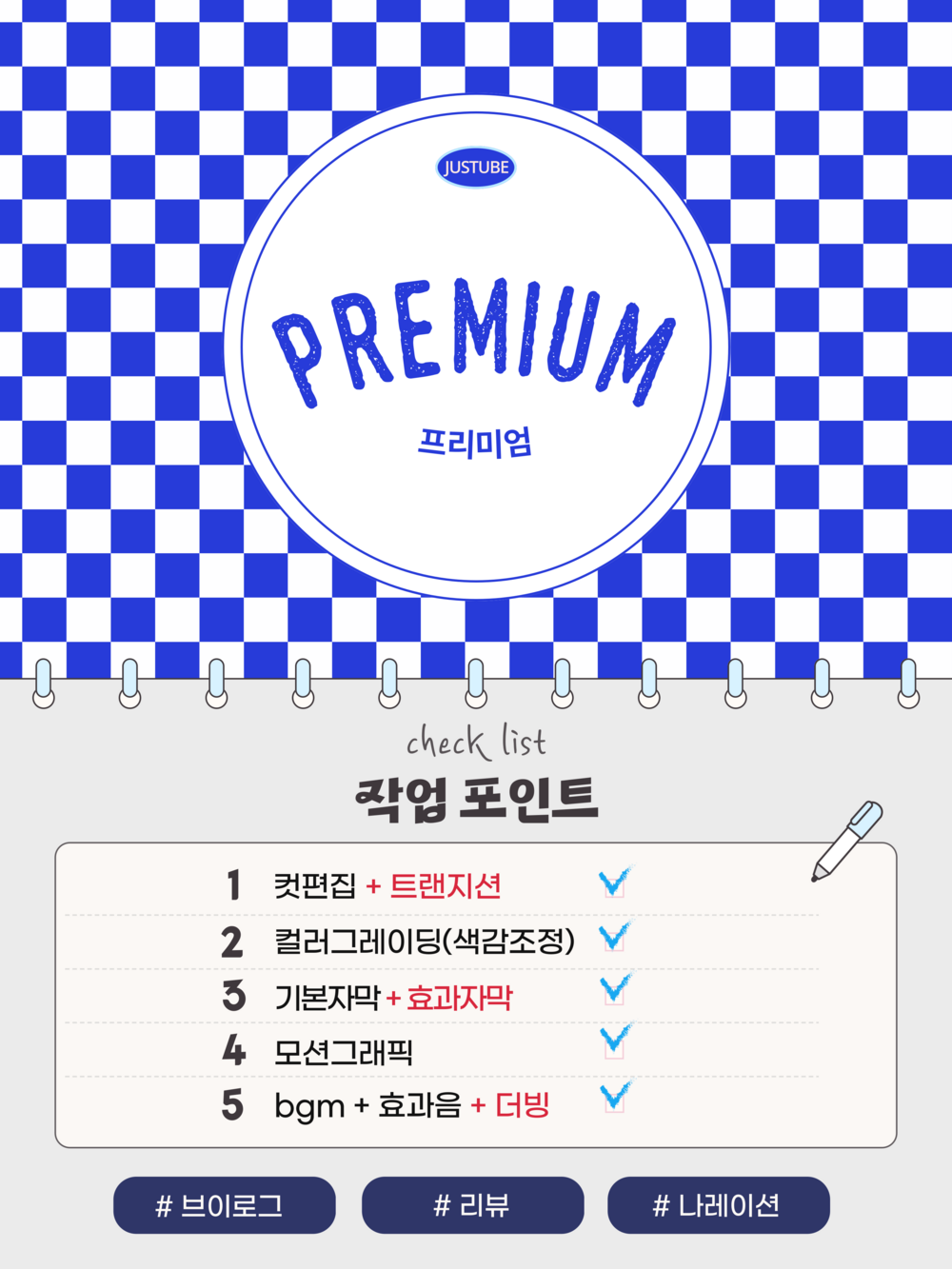 컷편집(트랜지션)+색보정+기본자막+효과자막+모션그래픽+효과음+bgm